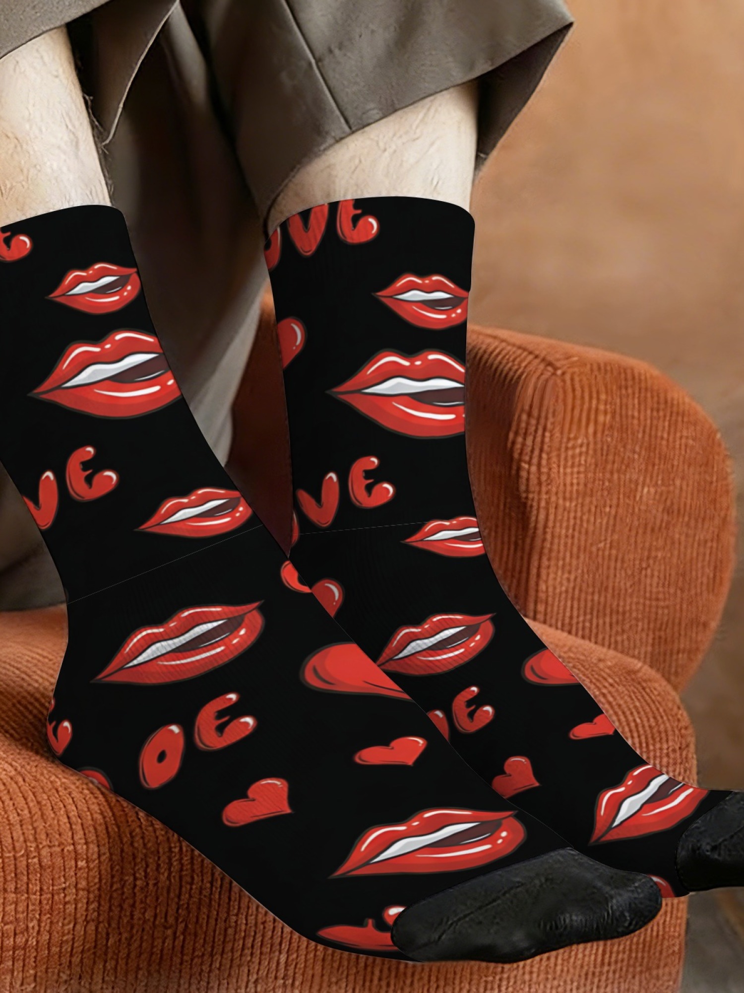 "Hot Lips" Men's Trunks & Socks Set | Sexy Tongue & Heart Print Valentine's Bundle