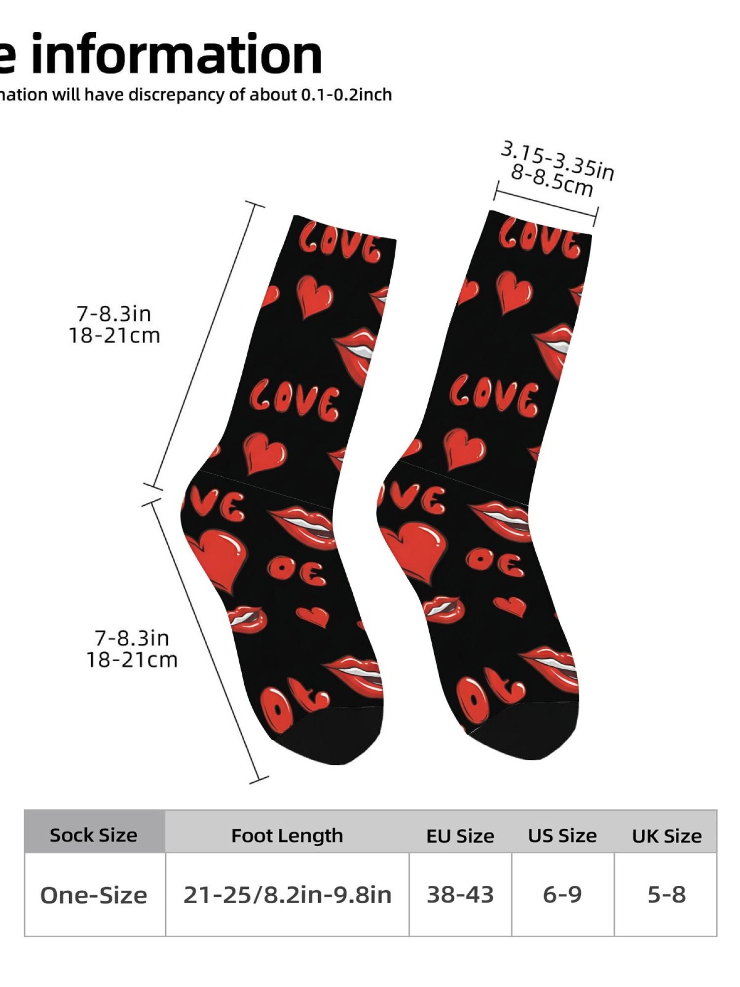 • Socks: One Size Fits Most (US 7-12). Crew length.