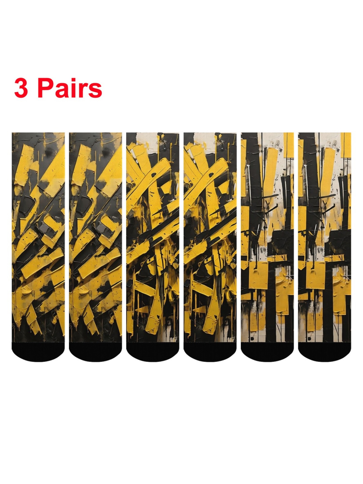 "Industrial Yellow" Abstract Art Crew Socks | Modern Streetwear Graphic Sock Set (3 Pairs)
