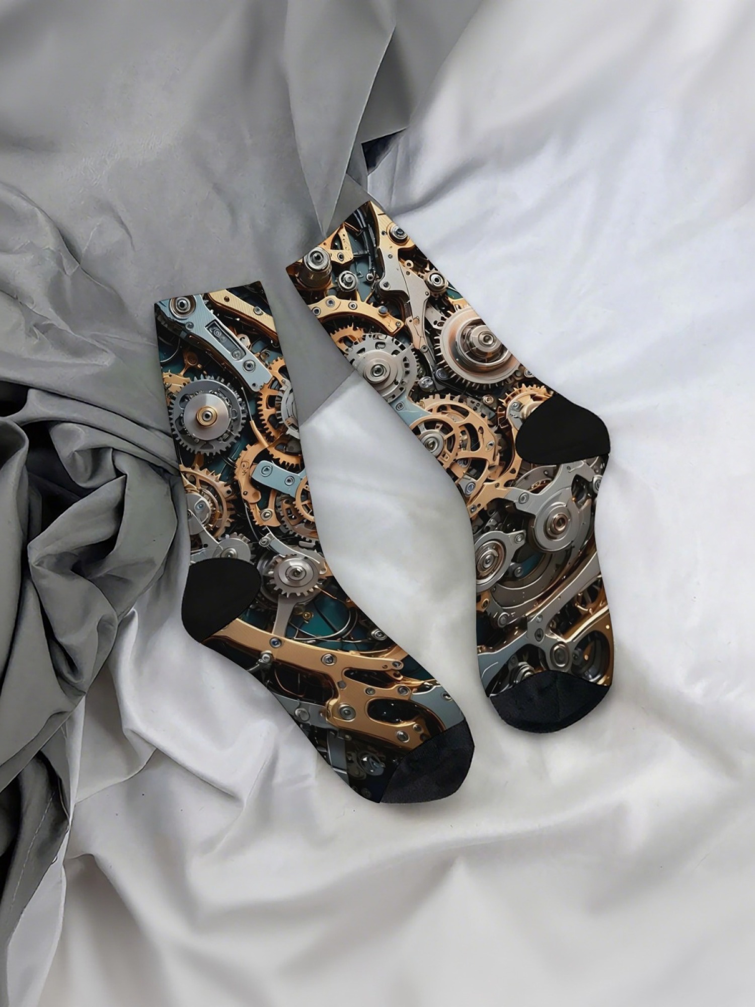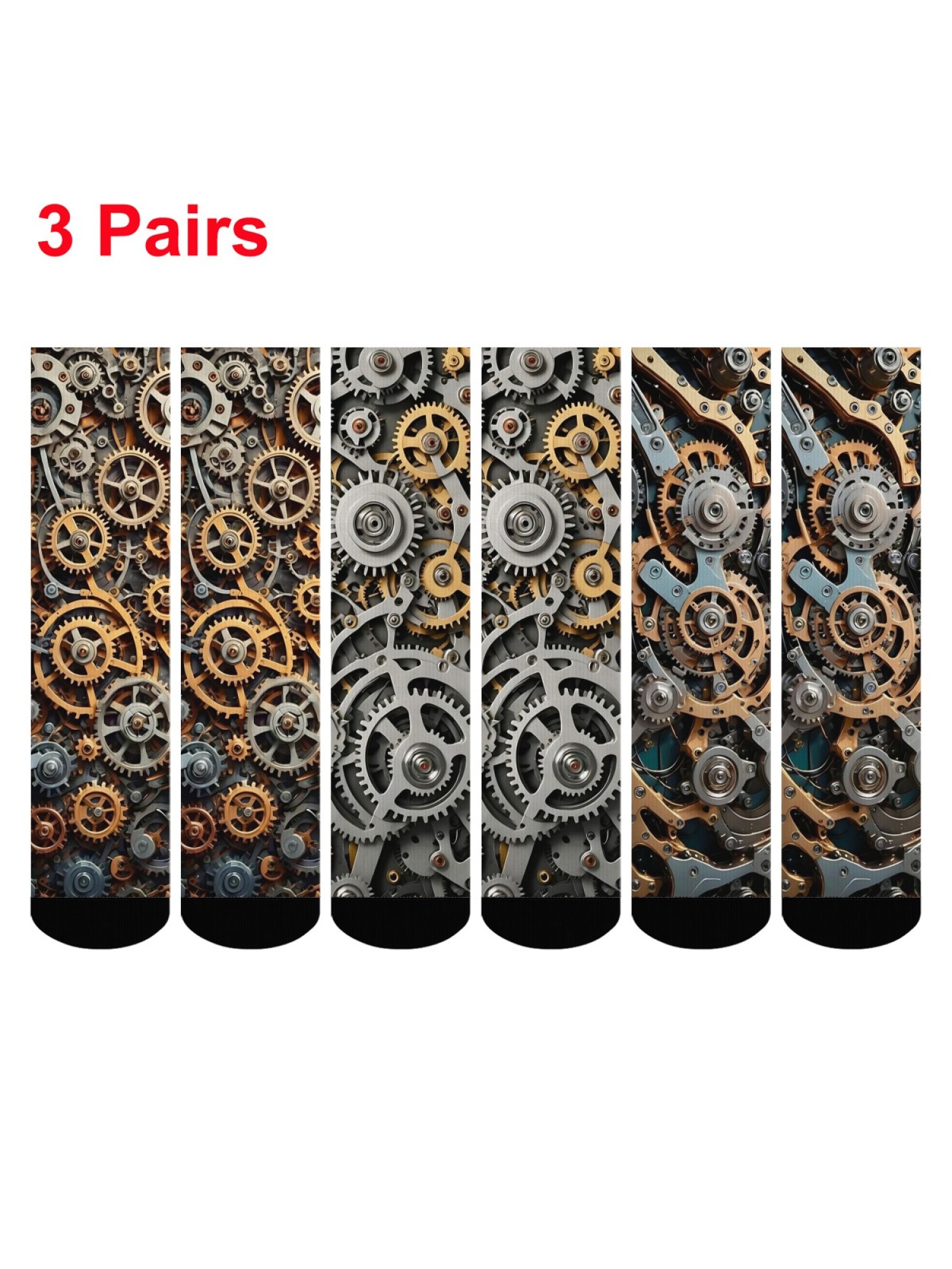 Step into the intricate world of machinery with this 3-Pack Steampunk Gear Sock Bundle. Featuring hyper-realistic prints of interlocking cogs, wheels, and industrial mechanisms, these socks capture the essence of steampunk and engineering aesthetics.
