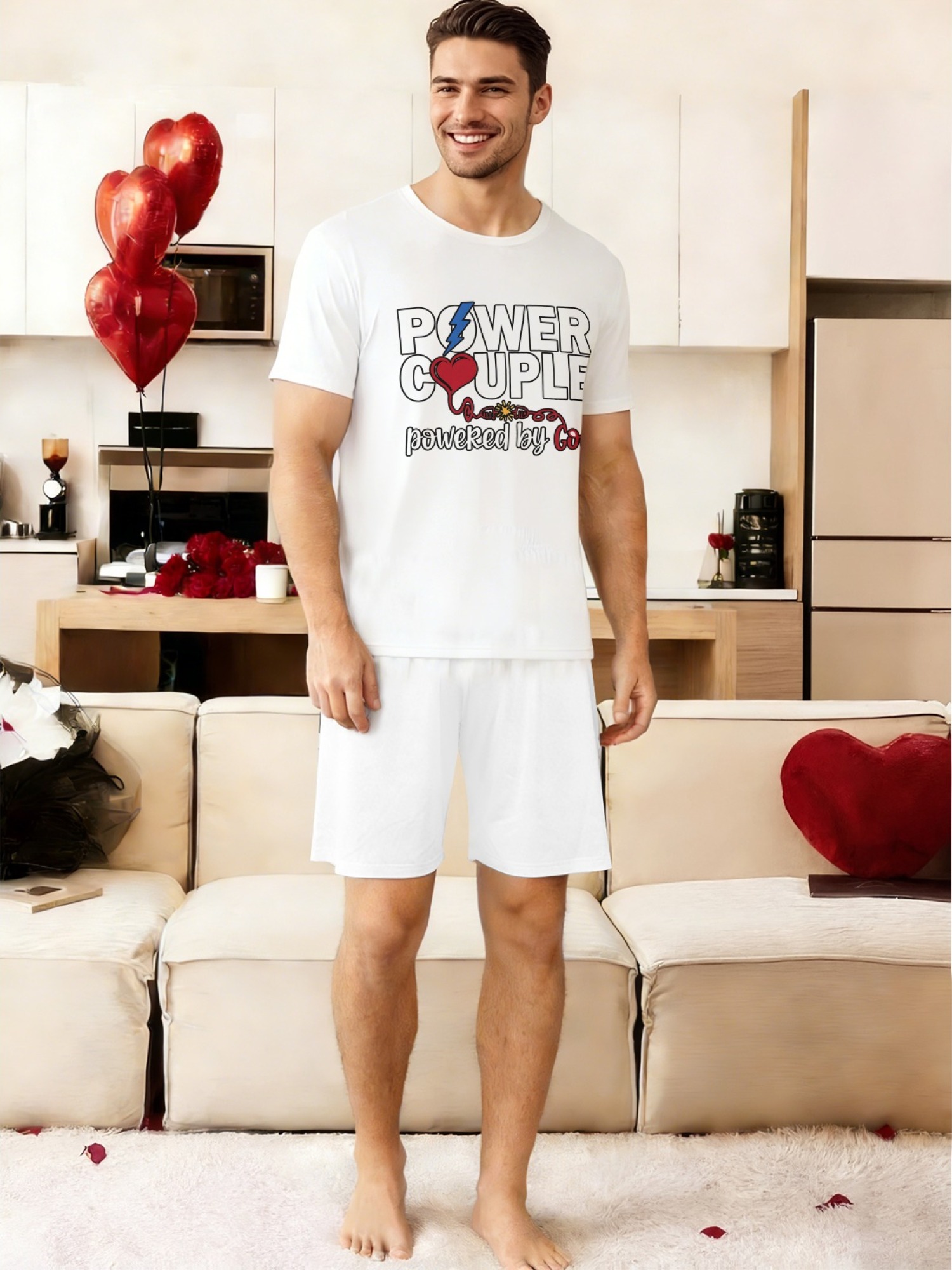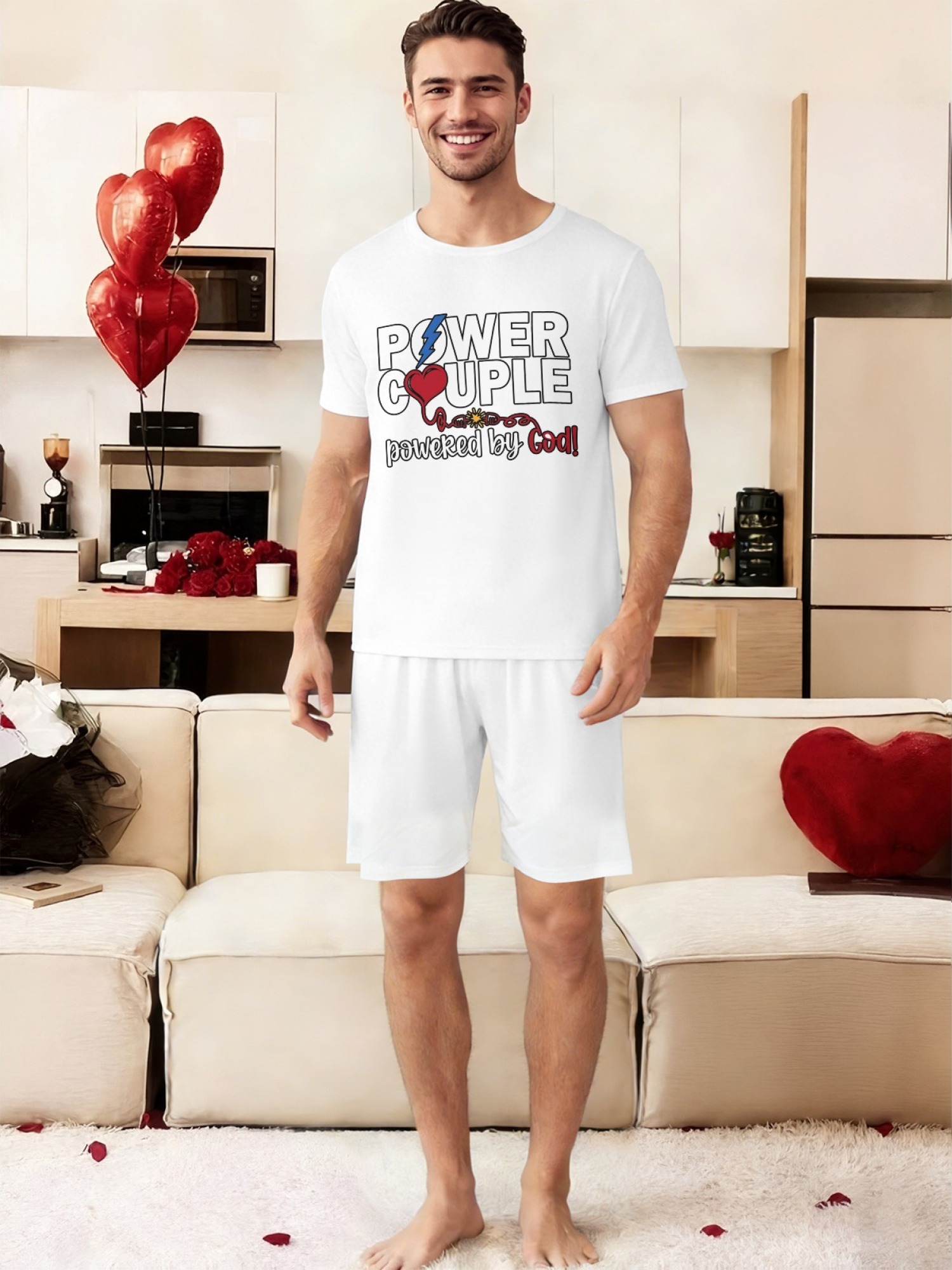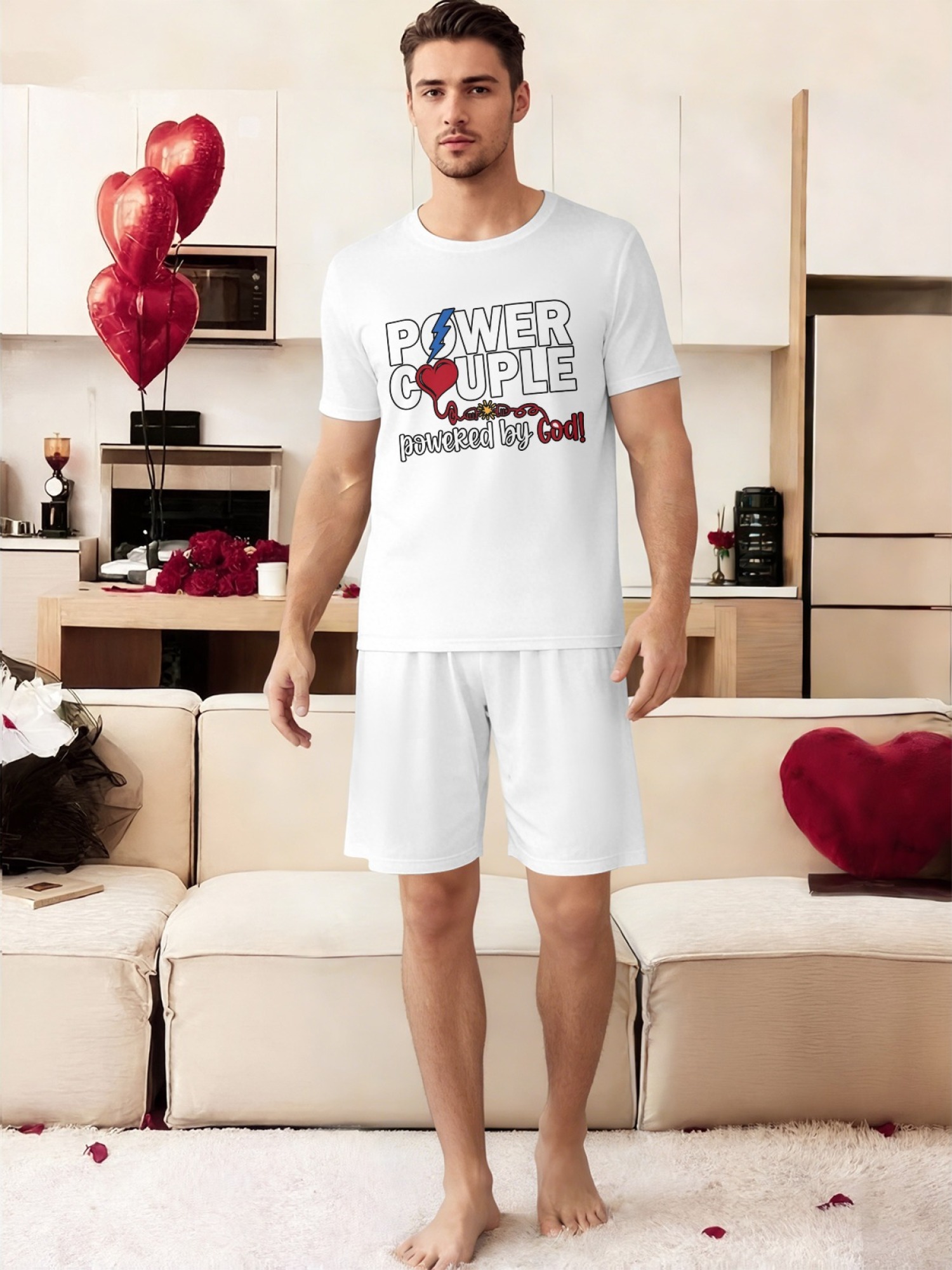 "Power Couple" Urban Streetwear Set – Faith-Inspired Graphic T-Shirt & Relaxed Fit Shorts (Couple Matching Set)
