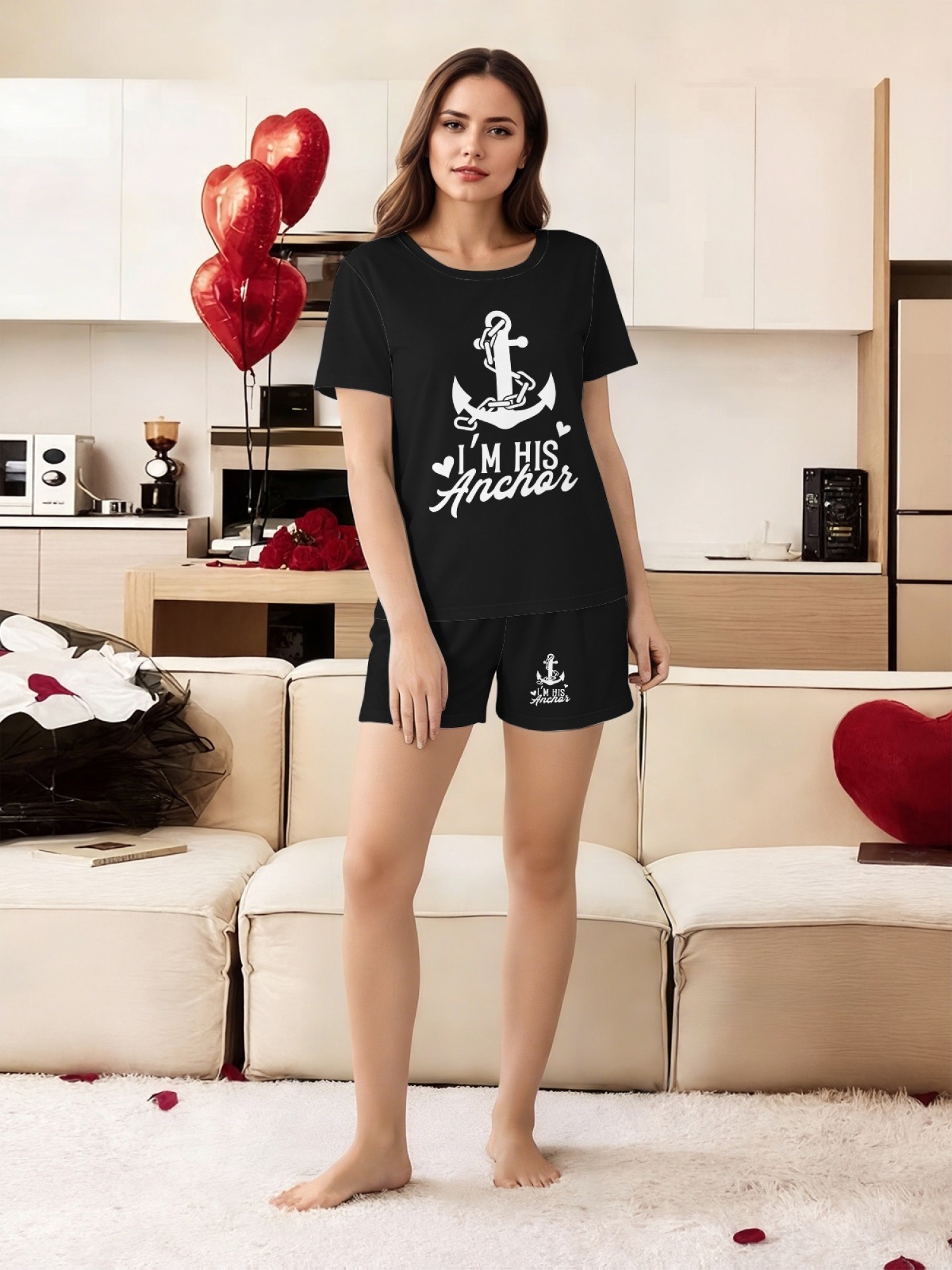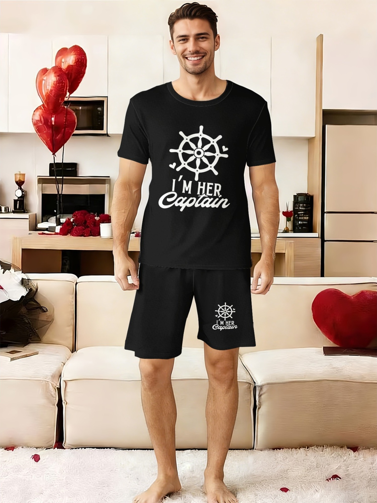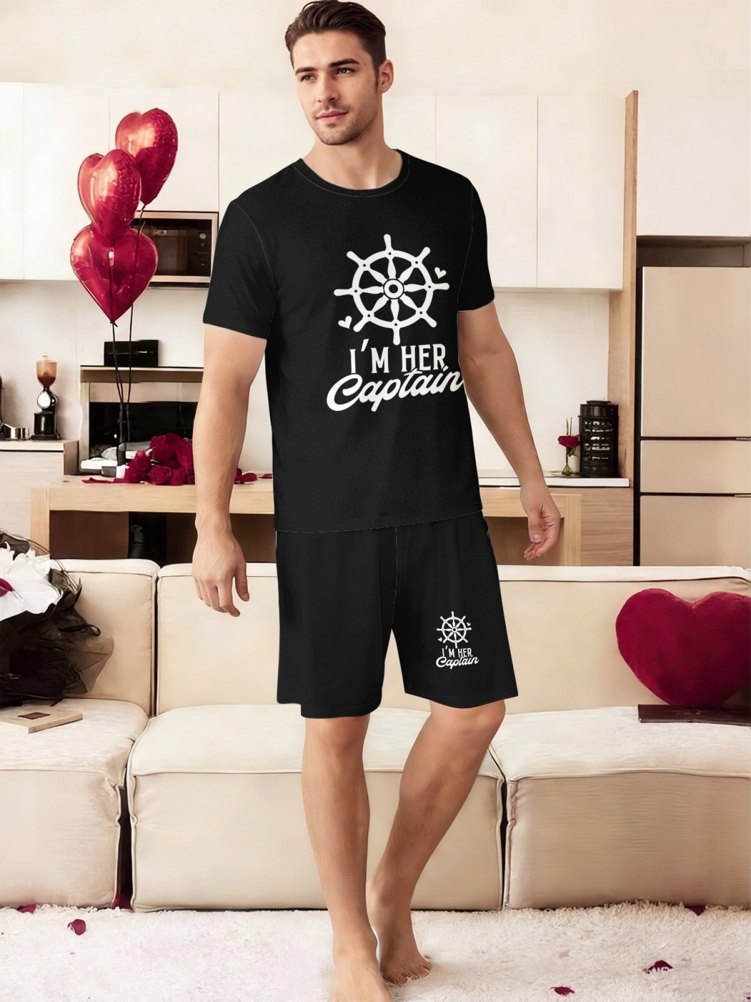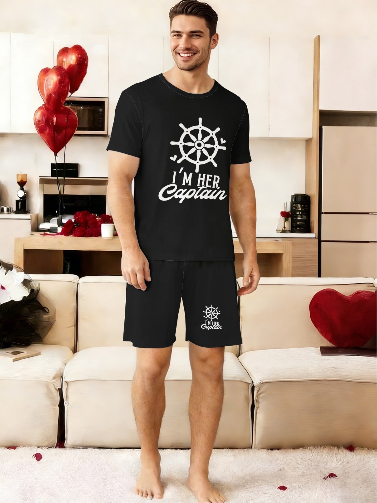 "I'm Her Captain & I'm His Anchor" Matching Couple's Summer T-Shirt and Shorts Set