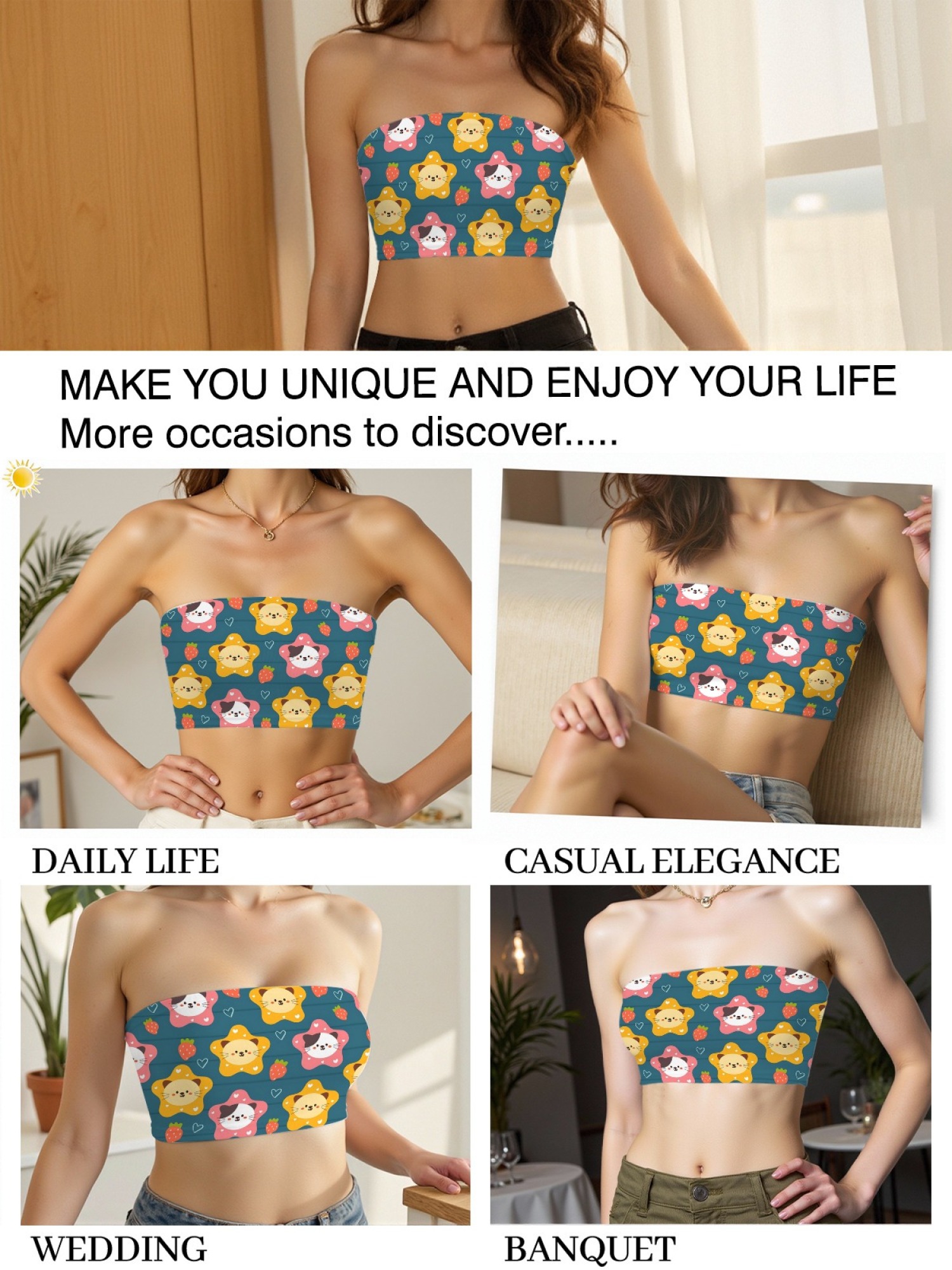 "Kawaii Kitty" Star & Strawberry Tube Top | Cute Cat Print Strapless Crop Top