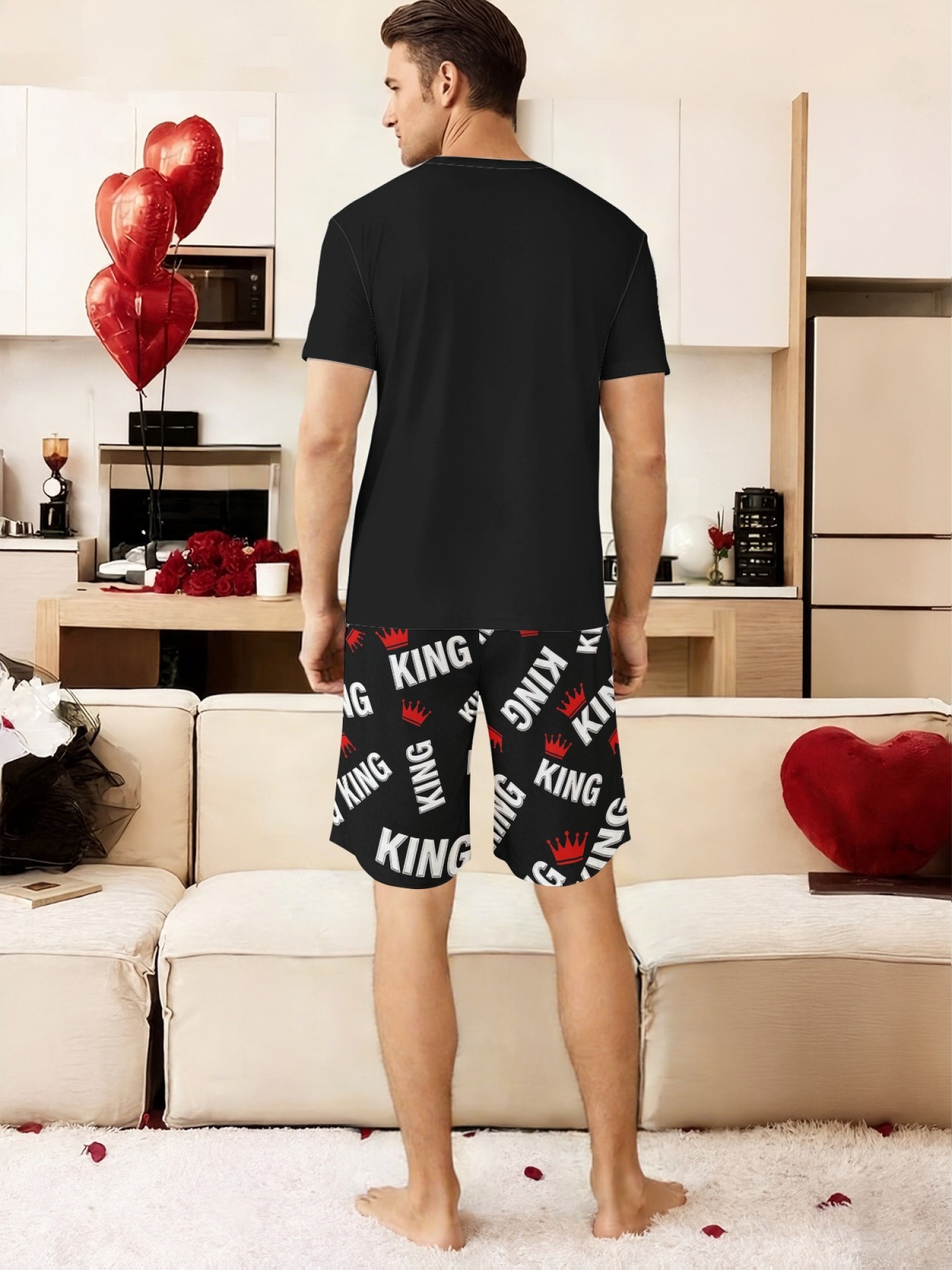 • Coordinated Style: The sets match perfectly in color (Black & Red) but have unique patterns for him and her.