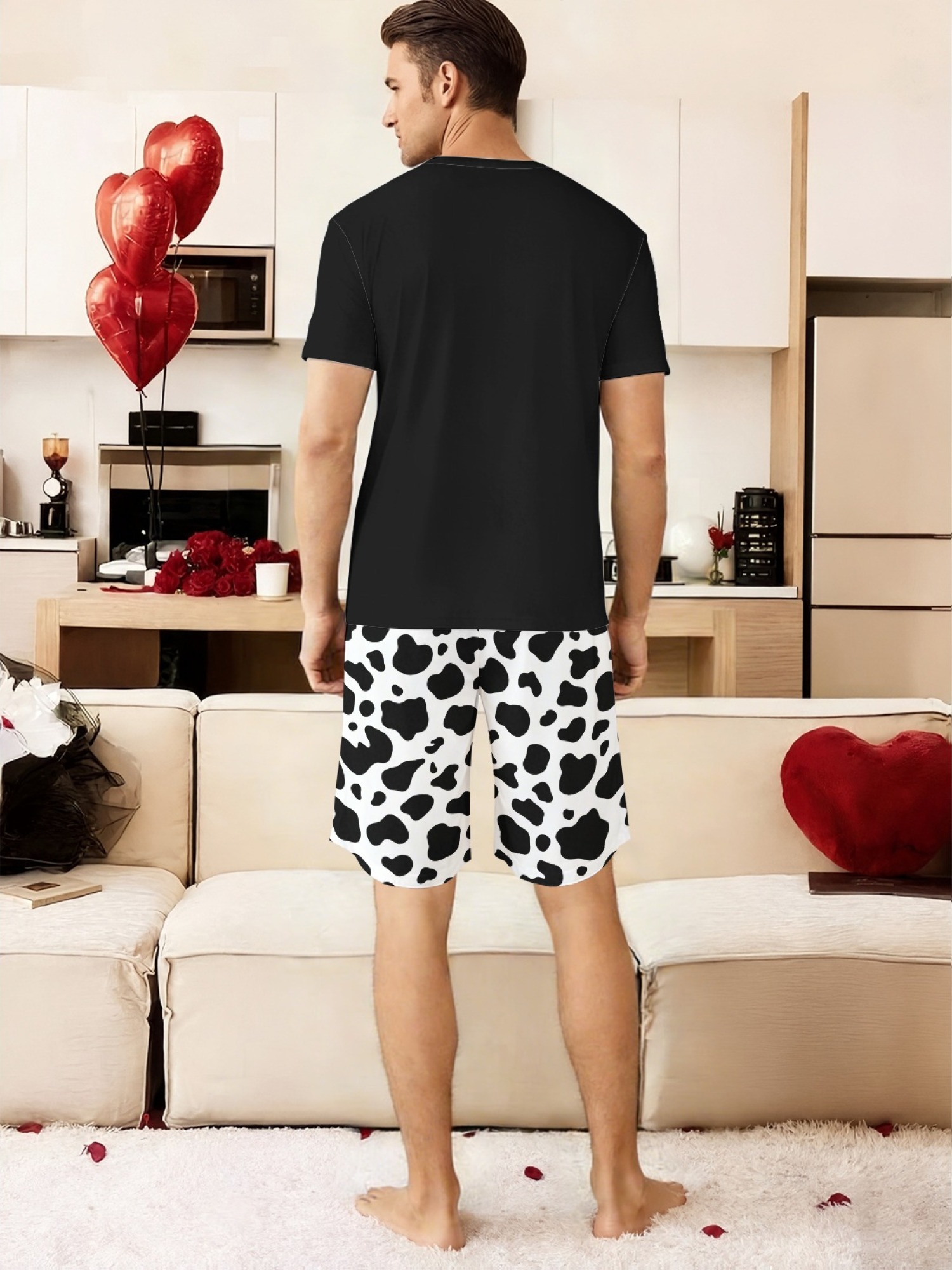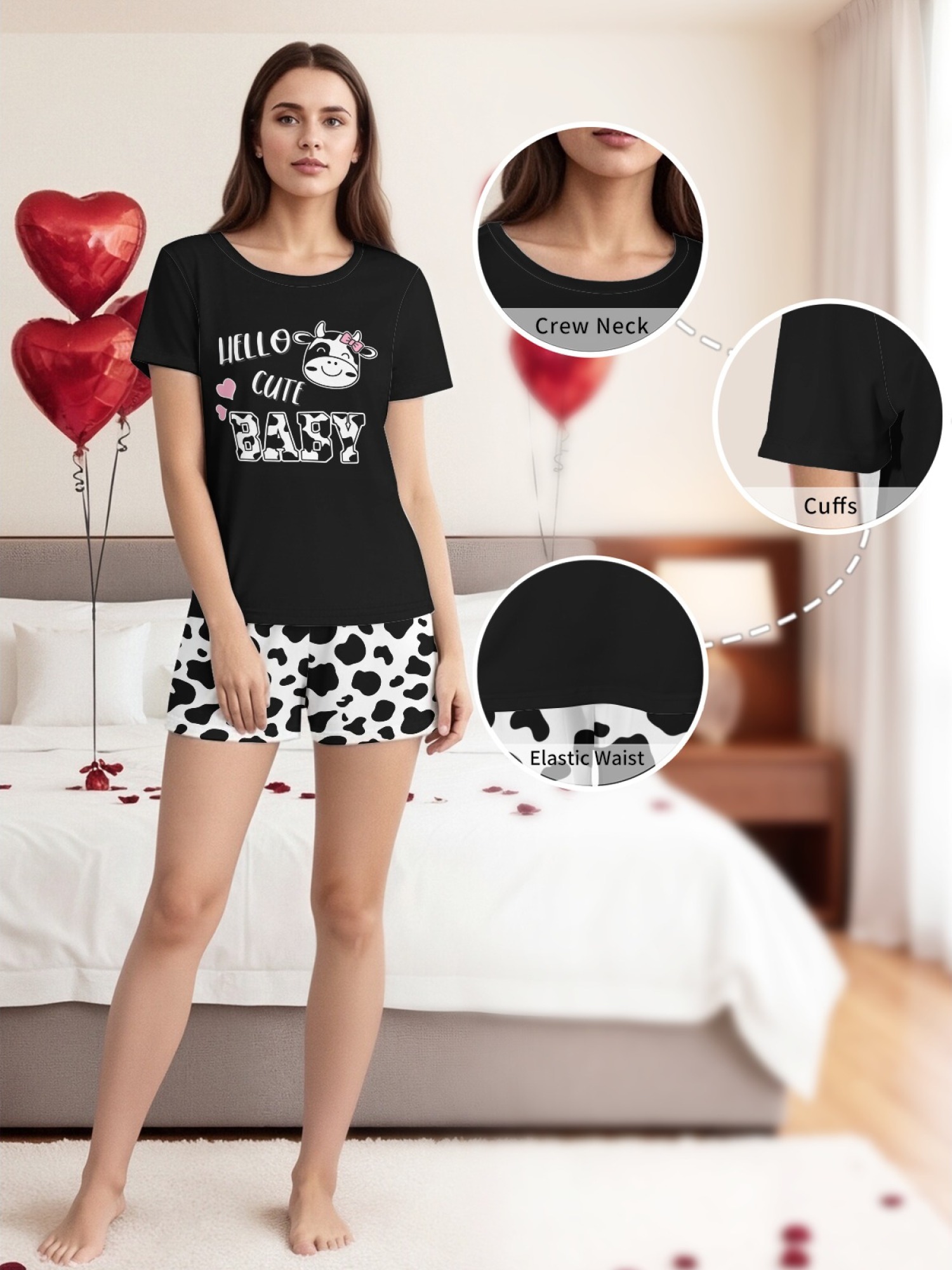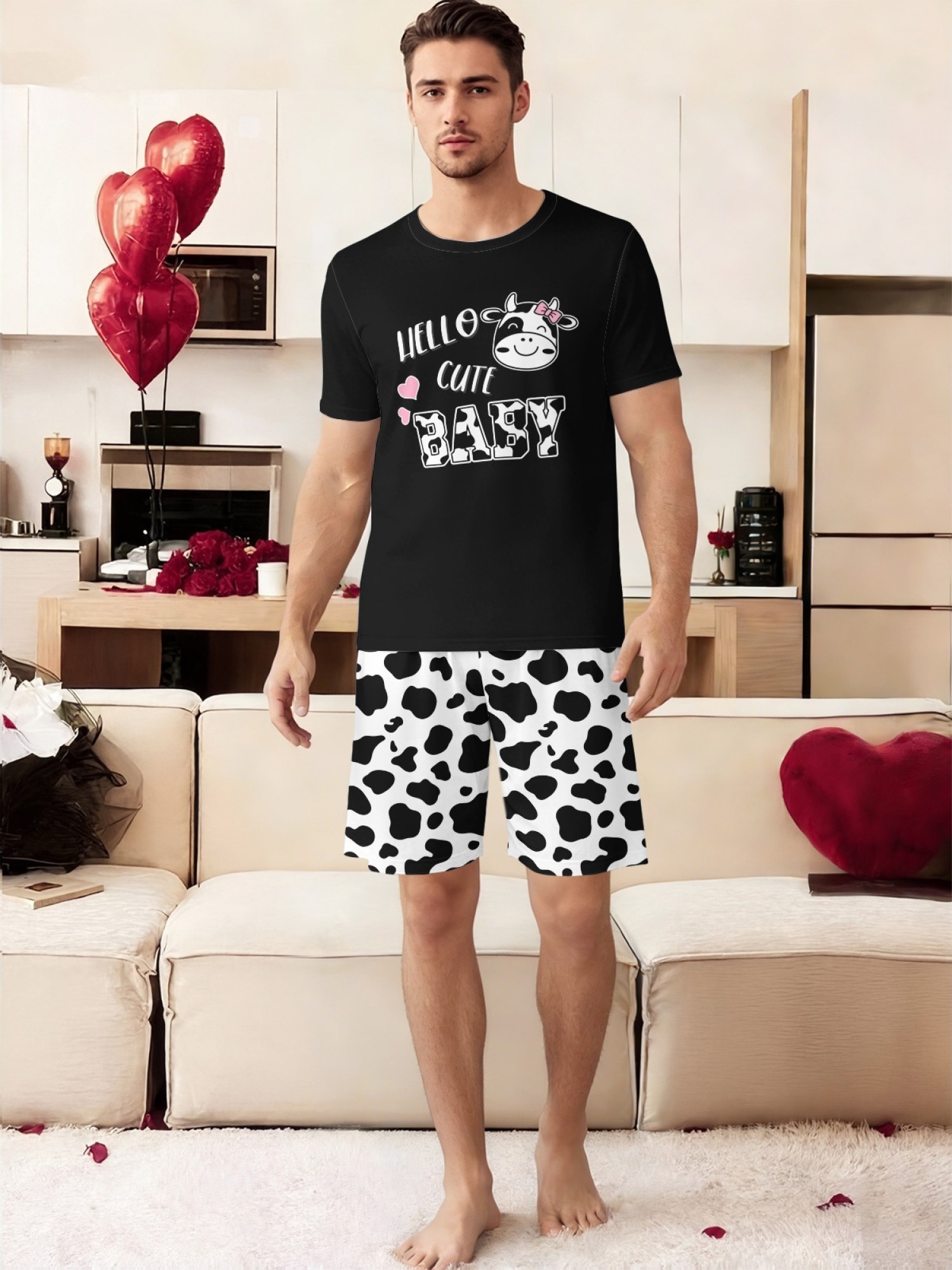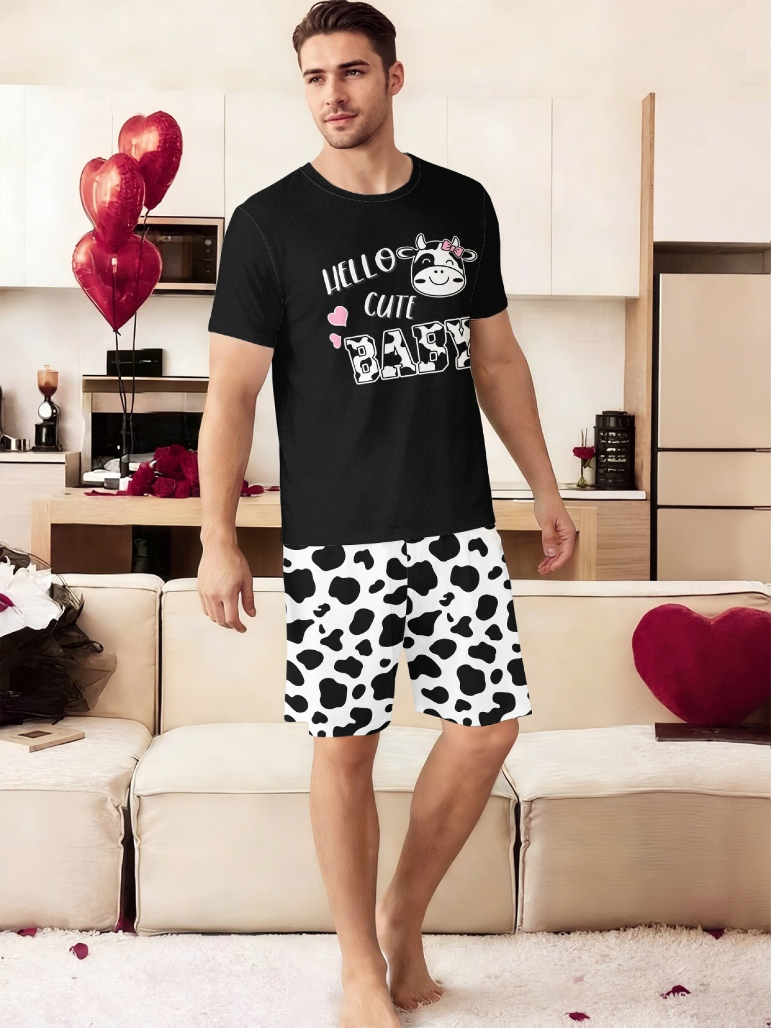 Matching "Hello Cute Baby" Cow Print Couple T-Shirt & Shorts Set