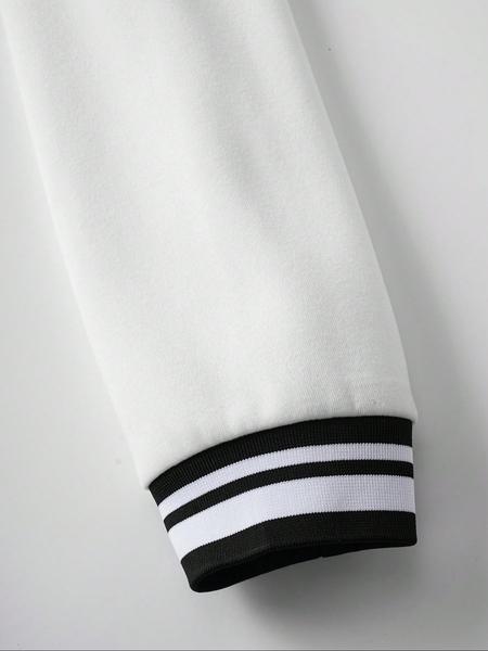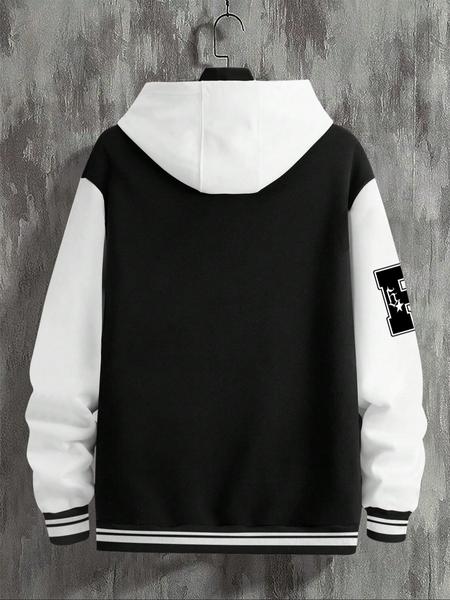 Men's Baseball Jacket Letter Print Long Sleeve Pilot Coat, Preppy Style Fitted Casual Outerwear for Fall & Winter
