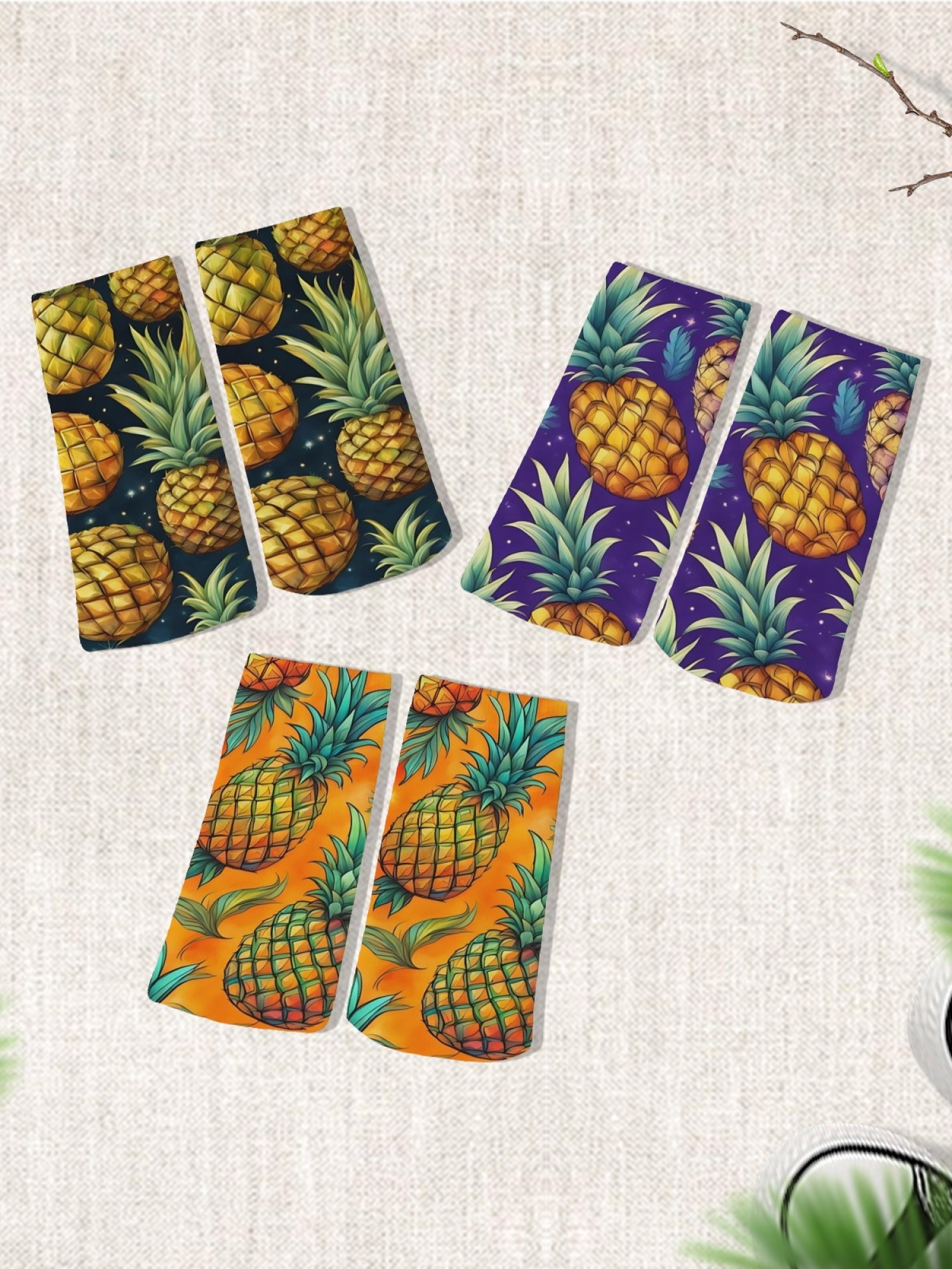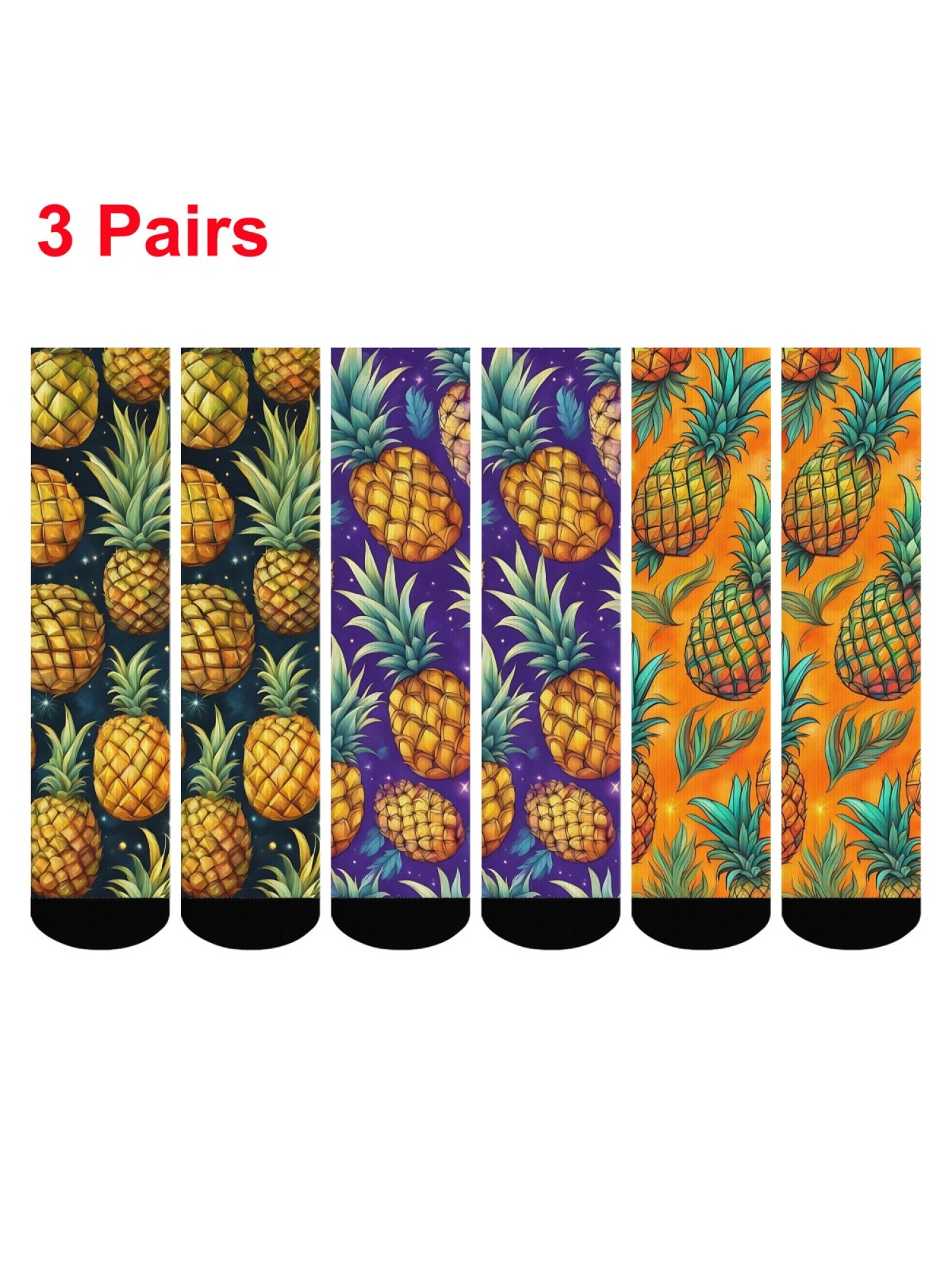 • 3-Pair Variety Pack: Includes three distinct pineapple-themed patterns.