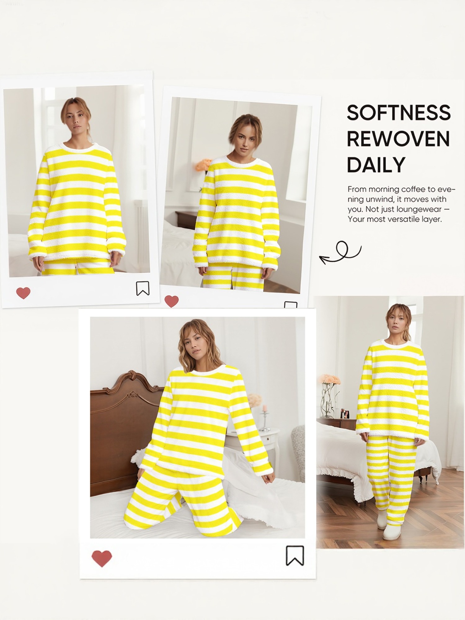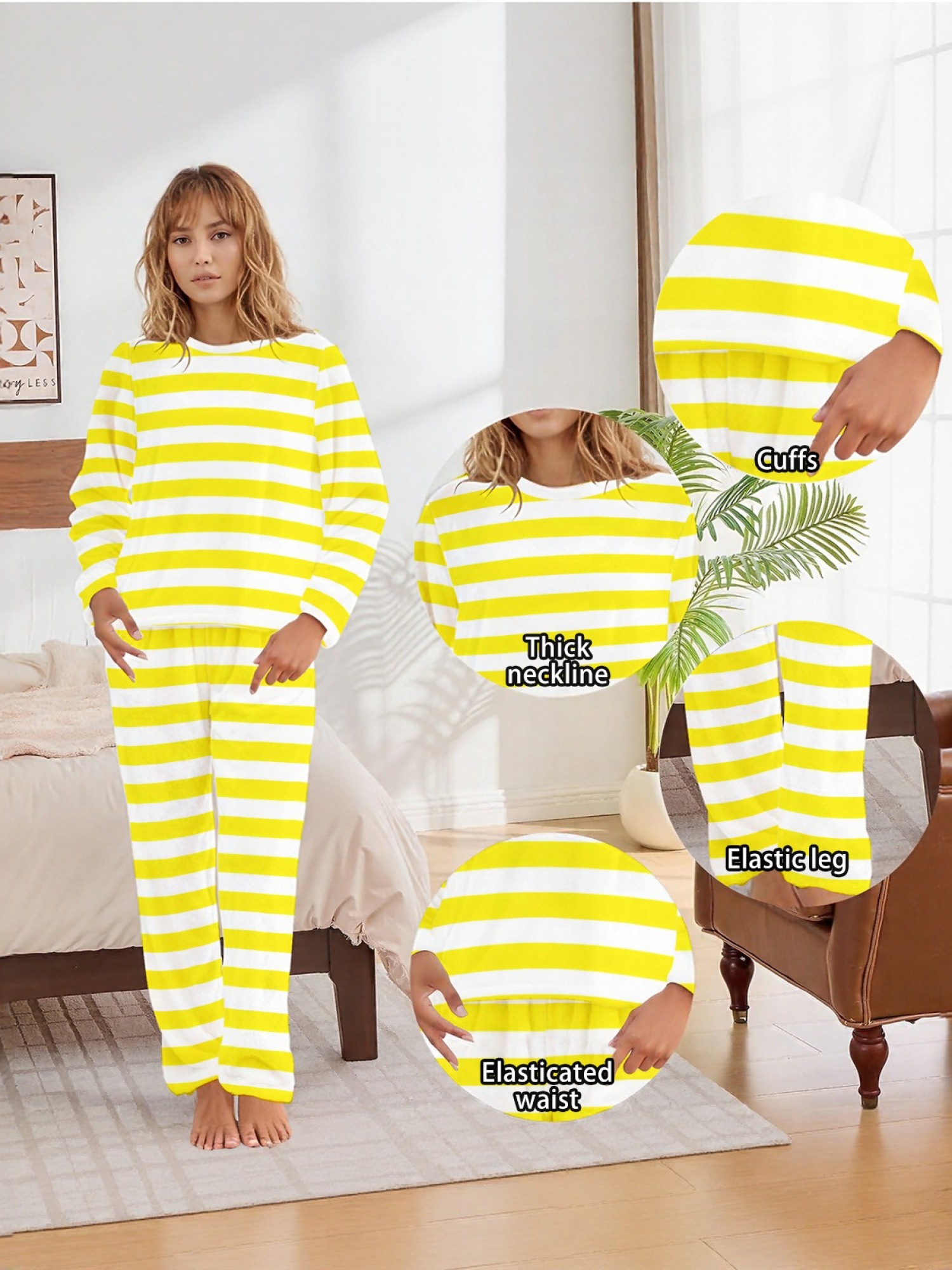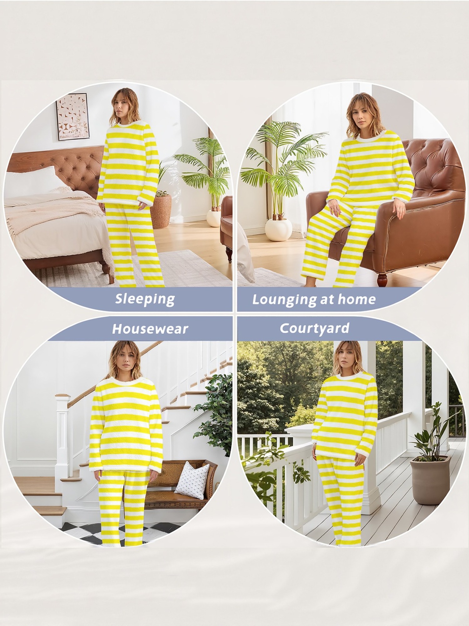 This 2-piece flannel pajama set comes in 5 cheerful stripe colors (yellow/red/orange/purple/pink)—bright, stylish, and so cozy for winter! The oversized striped design fits all body types, perfect for lounging, sleeping, or matching with friends.